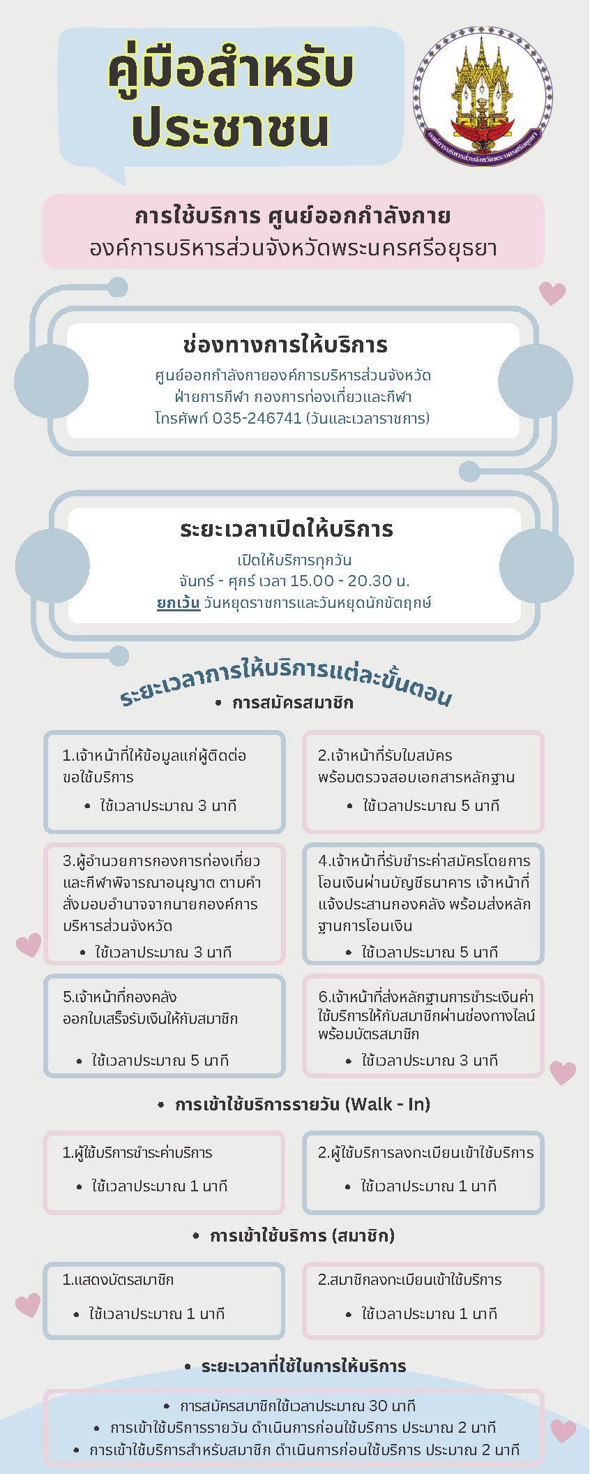 คู่มือประชาชนการใช้บริการศูนย์ออกกำลังกายองค์การบริหารส่วนจังหวัด